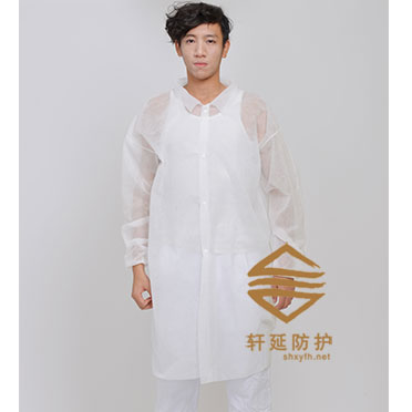 品名:一次性大褂 材质:全新无纺布 颜色:白色 款式:中性/男女通用 【一次性大褂】选用全新无纺布材质,防尘、透气、滤菌、无微粒超声波密封边缘,能较好的阻挡灰尘和微生物,无过敏反应,采用光滑布料减少纤维脱落,免洗、免保养,方便实用,更安全卫生。***用于食品加工行业、工业、电子、实验室、研究室、医疗、美容、化工、无尘洁净室、家务清洁打扫、防细菌***等环境下的使用。